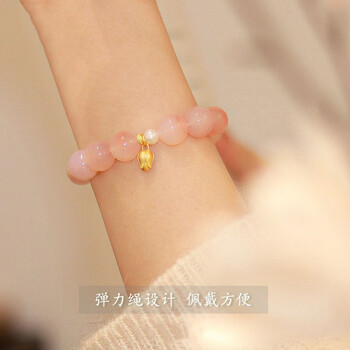 劳拉图蜜桃粉盐源玛瑙手链女夏天ins小众设计珍珠水晶手串送老婆女友生日礼物蜜桃粉玛蜜桃粉玛瑙手链