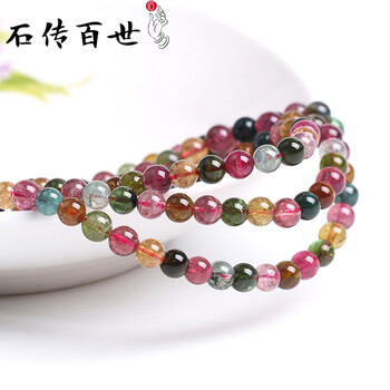 石玥珠宝收藏级5.5-6mm彩虹碧玺手链手串水晶玛瑙 女款 情人节礼物