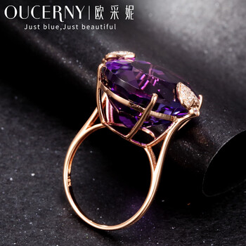 欧采妮22大克拉紫水晶戒面18 K玫瑰金 镶彩色宝石紫晶戒指 18号和15号圈口现货 其他圈口需定制联系客服