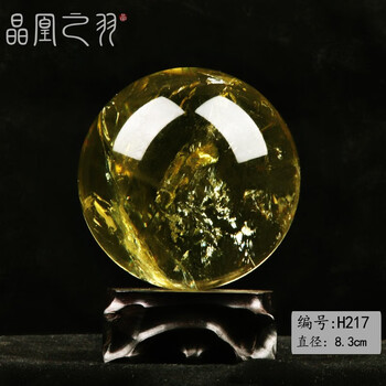 晶凰之羽天然黄水晶球摆件一物一图收藏级巴西黄色水晶原石打磨客厅商铺公司开业收藏礼品工艺品编号H217 配国检证书
