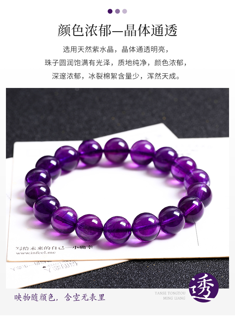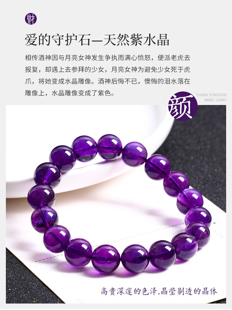 金石灵天然紫水晶手链男女款水晶玛瑙情侣手链佛珠手串送男生女生朋友生日礼物附鉴定证书 珠径13-14毫米