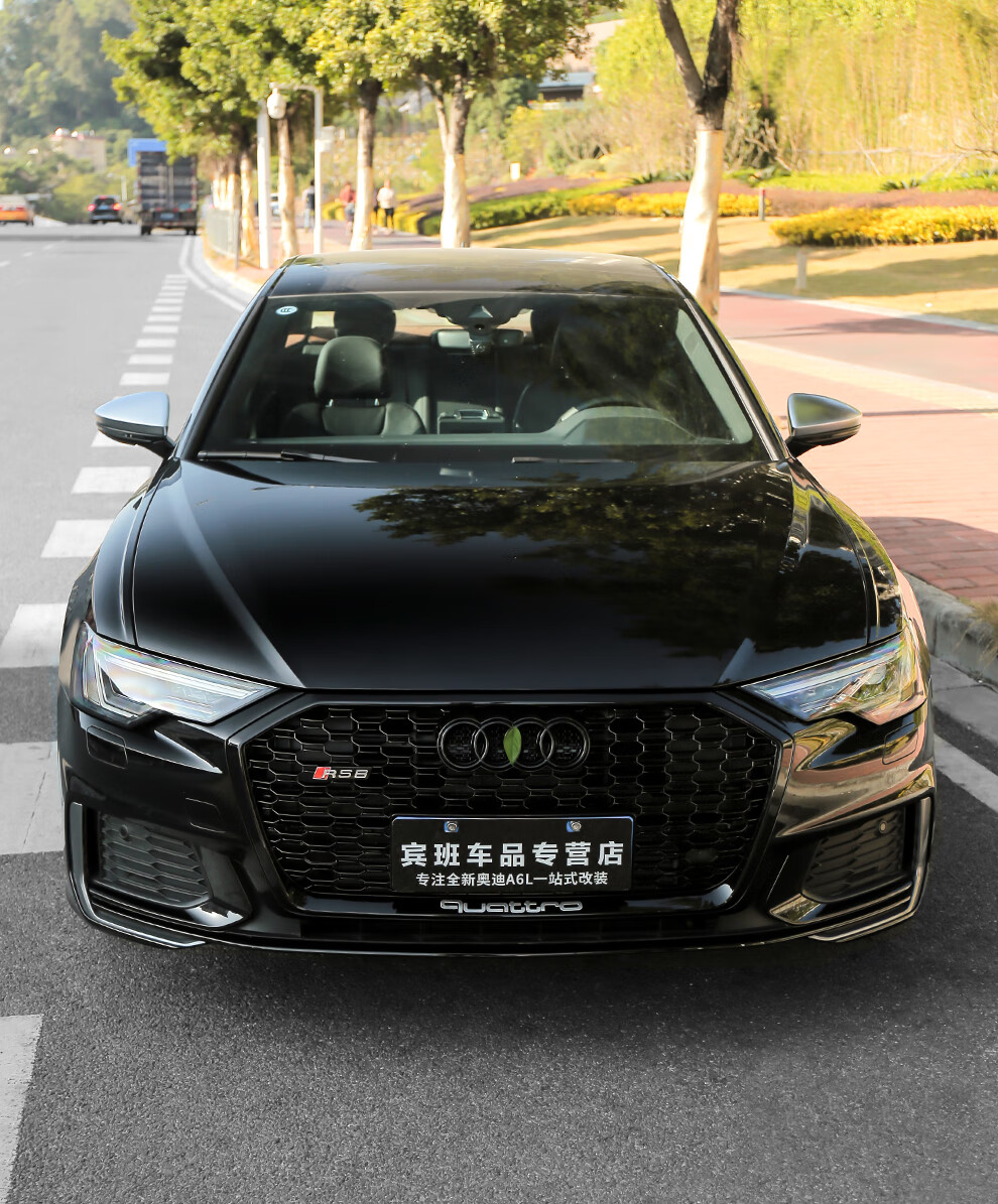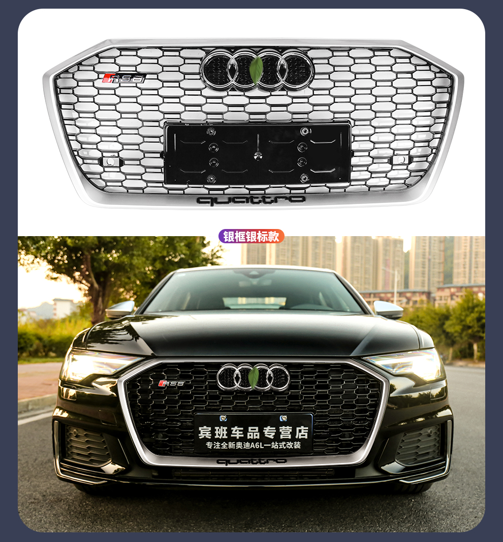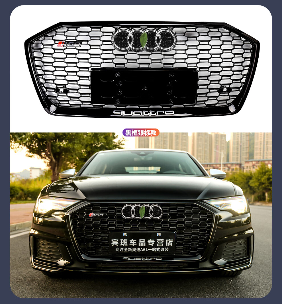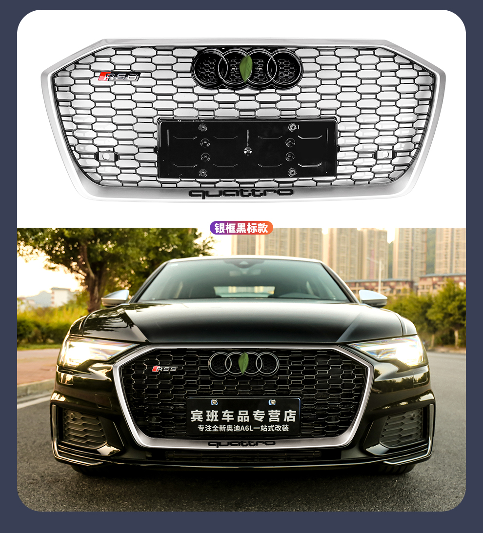 路图适用于19-23款奥迪A6L中网改装黑武士 C8原厂黑色RS6包围前杠装饰配件 黑武士中网四环黑标【19-22款A6L动感型】