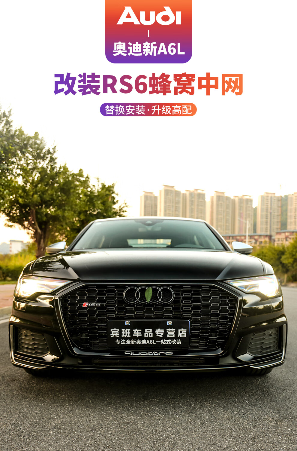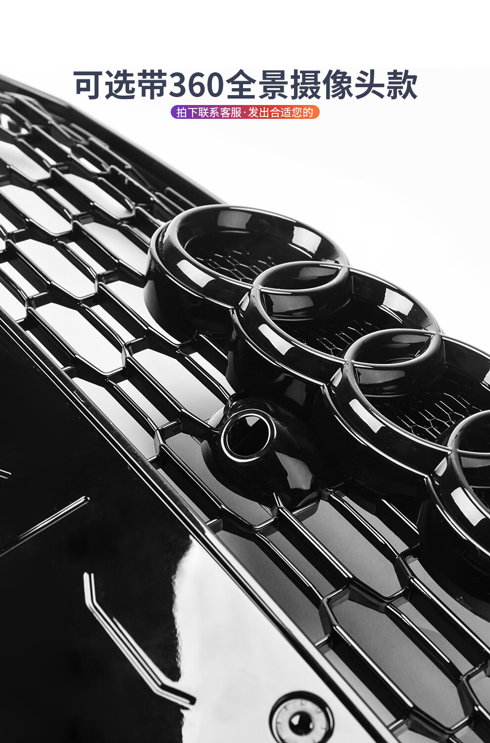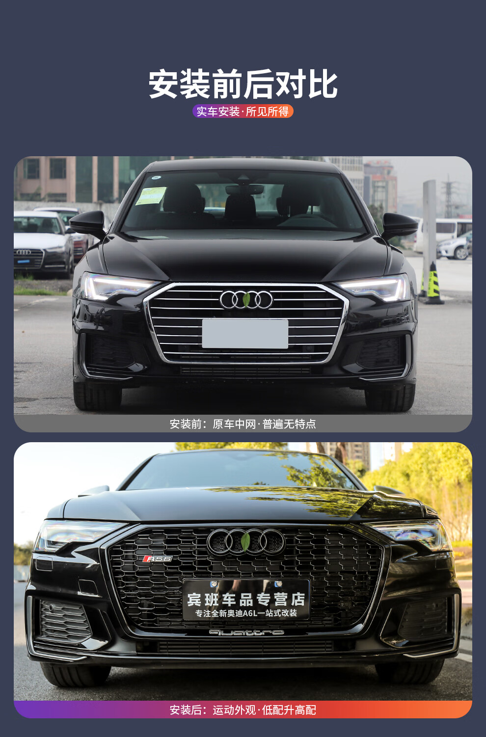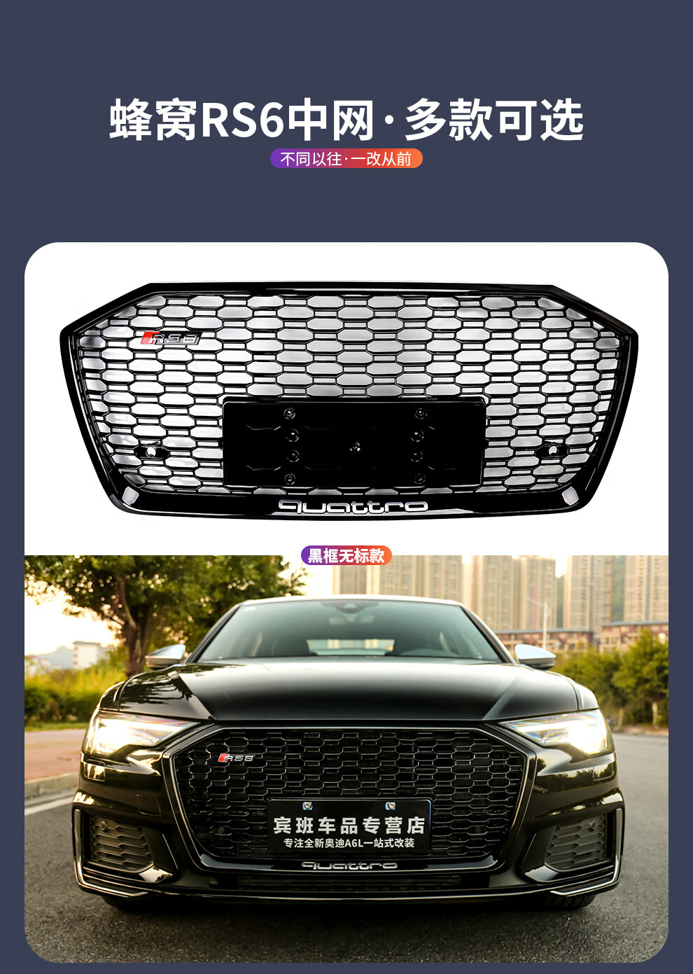 路图适用于19-23款奥迪A6L中网改装黑武士 C8原厂黑色RS6包围前杠装饰配件 黑武士中网四环黑标【19-22款A6L动感型】