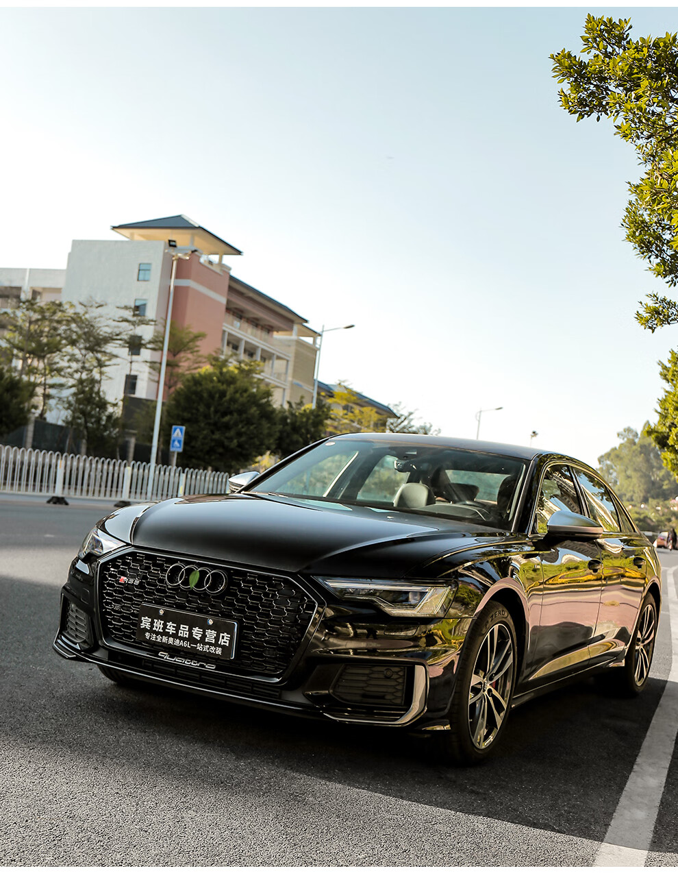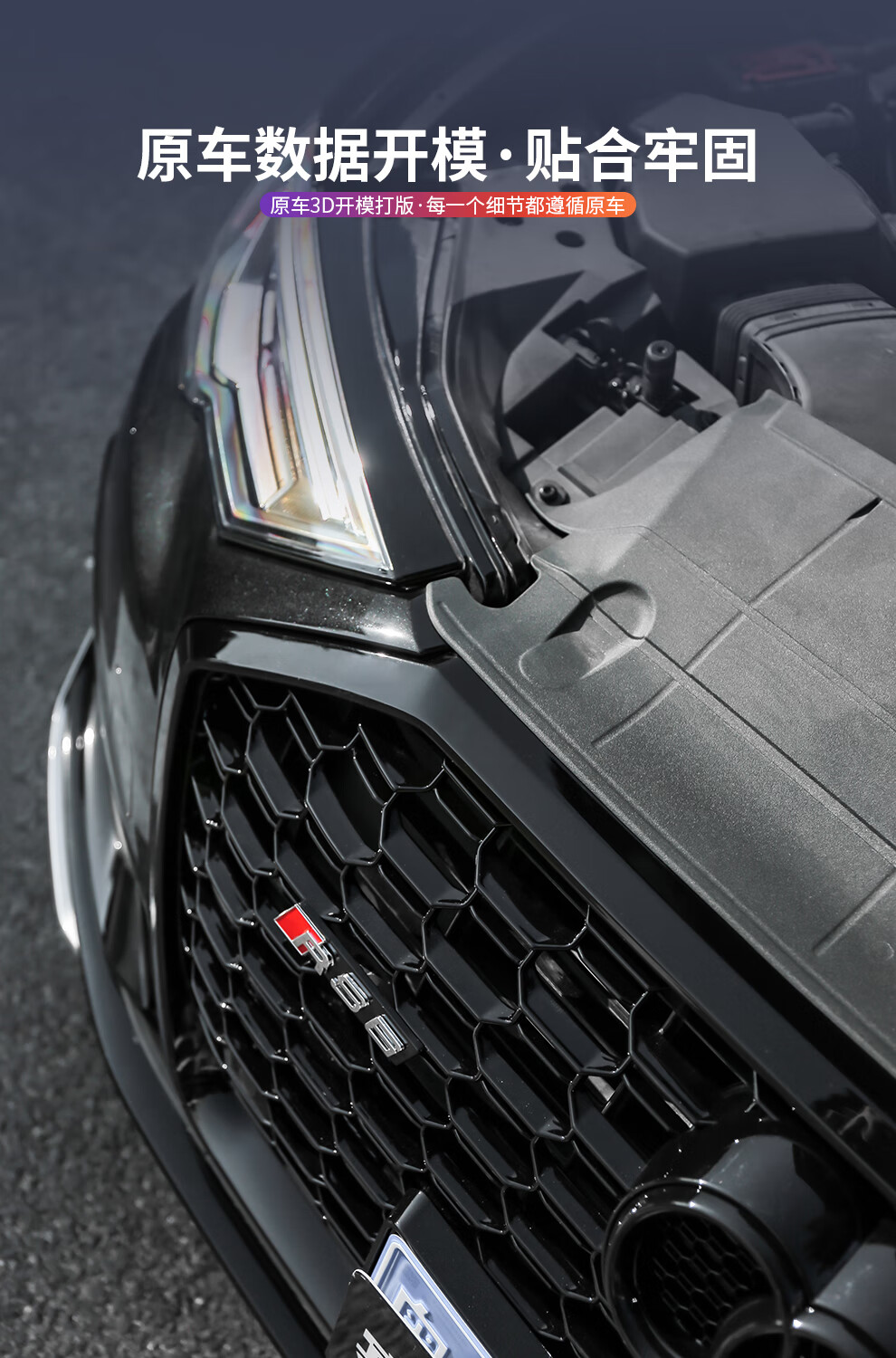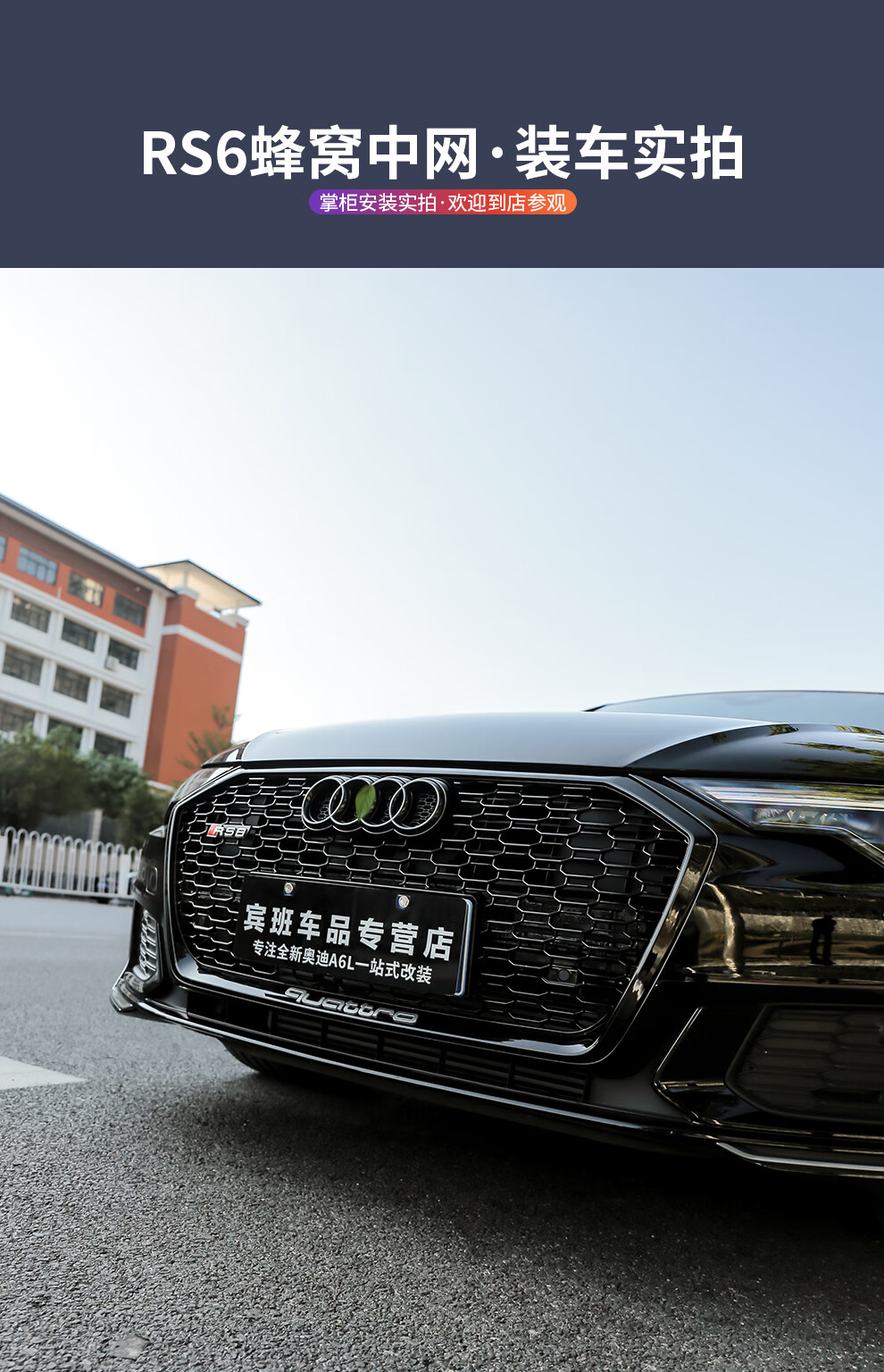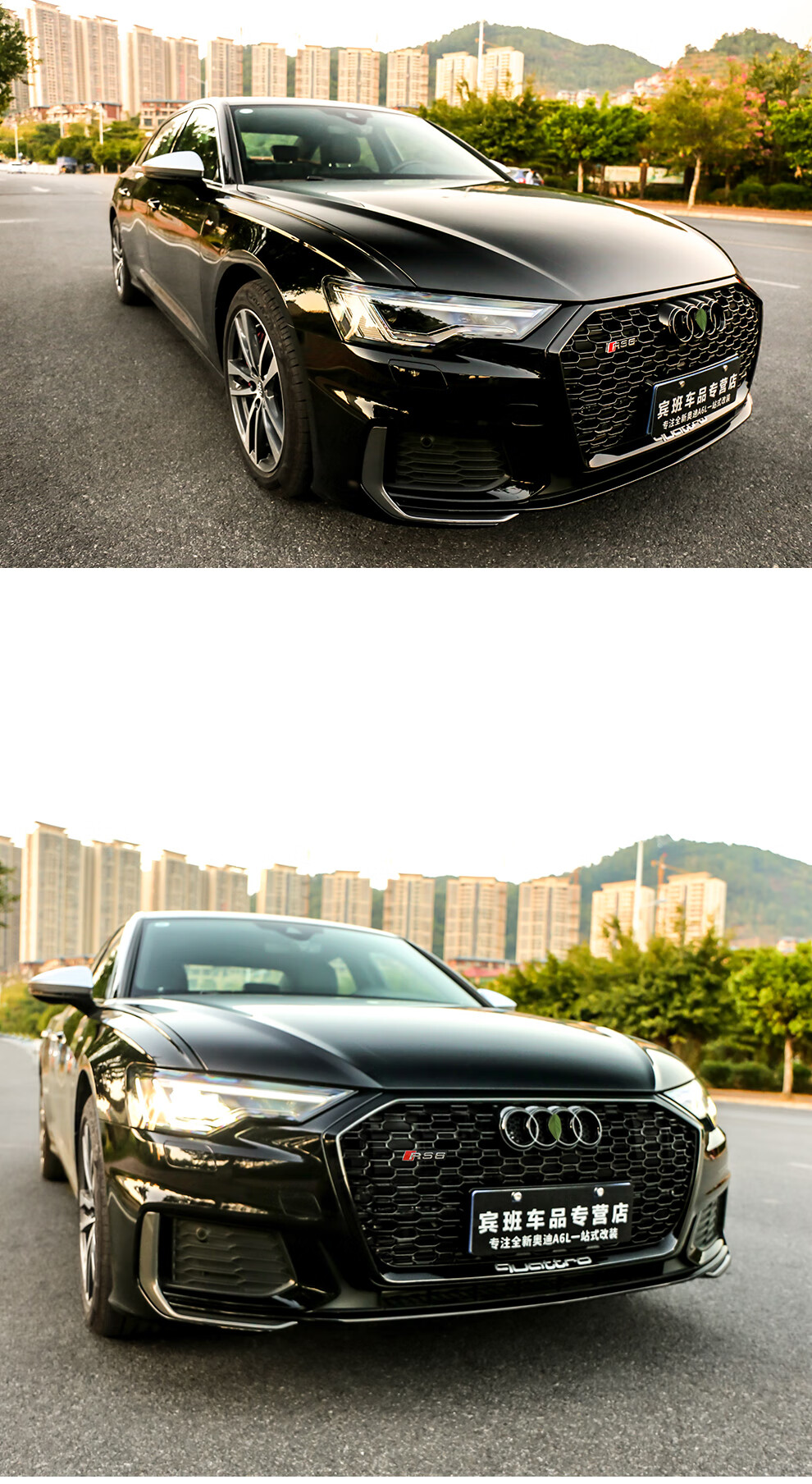 路图适用于19-23款奥迪A6L中网改装黑武士 C8原厂黑色RS6包围前杠装饰配件 黑武士中网四环黑标【19-22款A6L动感型】