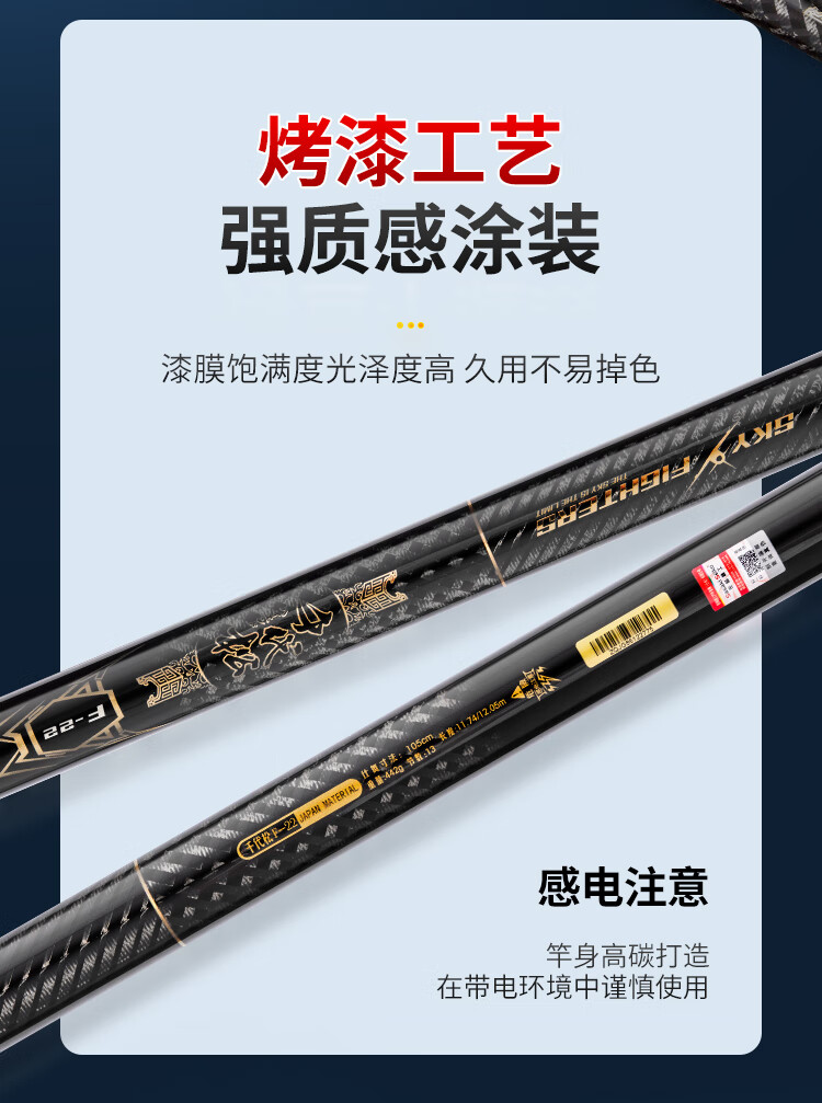 千代松佐崎精工碳素长竿炮杆碳素打窝竿10 11 12 13米超硬超轻传统钓竿炮竿 9米F22 前二节 礼品