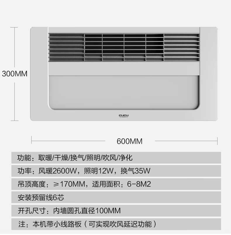 楚楚集成吊顶风暖浴霸大功率五合一风暖合体机照明取暖换气浴霸新4s CC-3060DFNF-4S